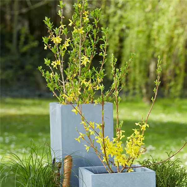 Blühende Hecken sind ein Highlight in Ihrem Garten. Beim Blütenhecken-Mix aus Forsythie, Johannsibeere und Co. müssen die Triebe nicht einmal akkurat geschnitten werden, denn sie ziehen mit ihren vielfältigen Blüten alle Blicke auf sich. Die Forsythie (Forsythia) ist sicherlich die bekannteste Frühblüherin unter den Blütengehölzen. Mit ihren gelben Blüten ist sie in der Regel der erste blühende Strauch in unseren Breitengraden. Die Blüte erscheint meist ab März in großer Fülle. Die Forsythie ist botanisch gesehen eine Pflanze aus der Familie der Ölbaumgewächse (Oleaceae).