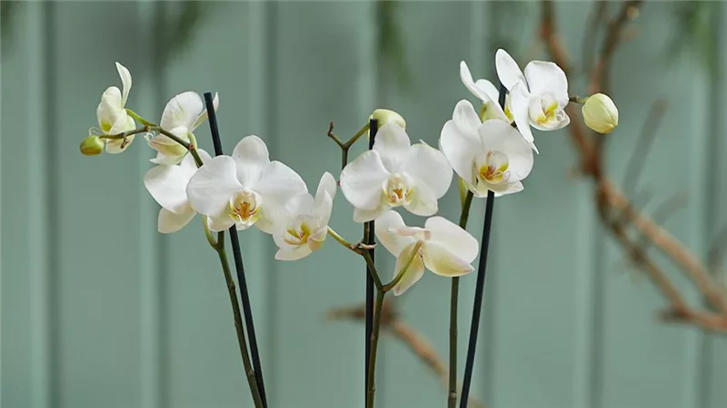 Kleine weiße LED-Bäume in unterschiedlichen Größen finden überall einen dekorativen Platz. Besonders winterlich wirken sie als Paar platziert. Der grün-weiß gestreifte Tischläufer bildet die perfekte Basis jedes Weihnachtsarrangements auf dem Tisch. Elegante Akzente setzen die Blütenfarben der Schmetterlingsorchidee (Phalaenopsis-Hybride) in Weiß, Gelb, Rosa, Violett und gezeichneten Blüten. Ihre drei Triebe erheben sich grazil aus dem wunderschönen Übertopf. Das gold-weiße Windlicht aus Glas setzt glänzende Akzente. Wer möchte, kann das Windlicht auch als Übertopf für seine Lieblingspflanzen verwenden.