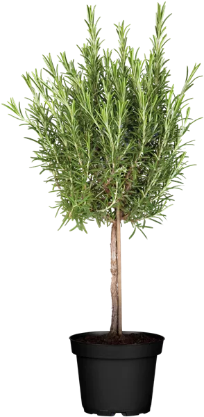 Highlight auf der Fensterbank – das Rosmarin-Stämmchen (Rosmarin officinalis). Achten Sie darauf, dass es viel Licht und Sonne abbekommt. In der Wohnung blüht Rosmarin von März bis April. Ziert das Stämmchen Ihren sonnigen Balkon oder die Terrasse, blüht es ab Mai. Ihre Blüten in Hellblau locken hier zahlreiche Schmetterlinge, Bienen und andere Bestäuber an. Rosmarin braucht wenig Wasser.