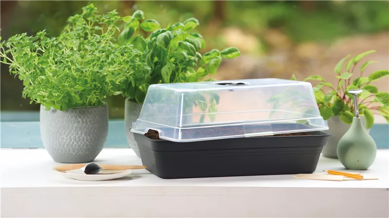 Es gibt Gemüsesamen, die direkt ins Beet können, oder Pflanzen, die eine Vorkultur benötigen. Wer sein eigenes Gemüse ernten will, kann jetzt damit beginnen, Gemüsesamen einzupflanzen. Hierfür ist ein sonniger und warmer Platz auf der Fensterbank ideal. So wird die Anzucht leichter: Das Anzuchthaus aus recyceltem Kunststoff passt leicht auf jede Fensterbank. Es sorgt für ein hervorragendes Mikroklima für Ihre Samen, z. B. Tomaten-Saatgut (Lycopersicon), und Keimlinge. Es ist mit einem klaren Deckel und einer Möglichkeit zur Belüftung ausgestattet. Ob Gemüse oder Kräuter – mit dem Anzuchthaus werden Sie Selbstversorger und können Ihr gesundes Gemüse vorziehen.
